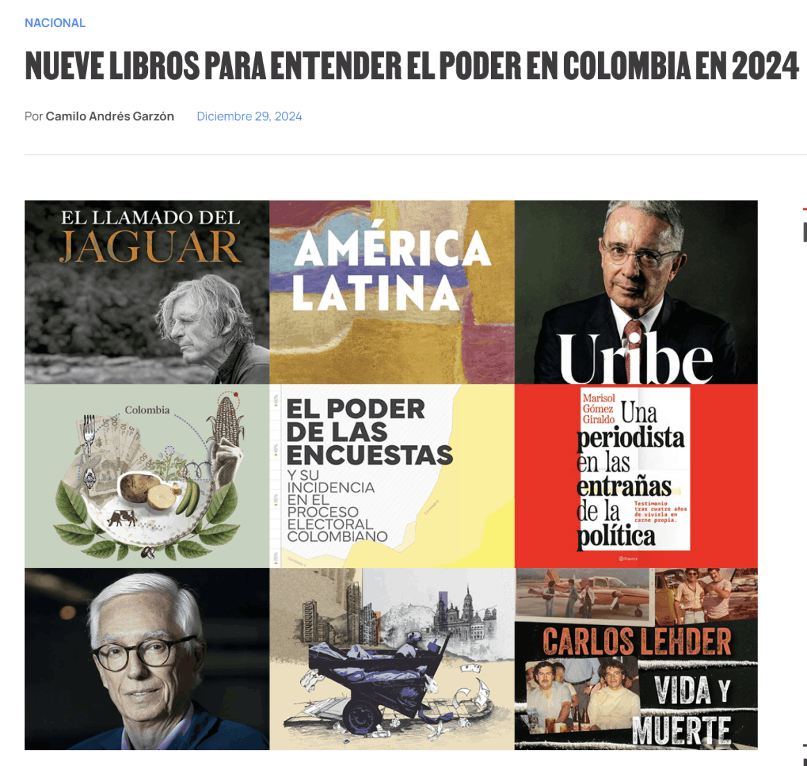 Política en el Plato: los debates de la alimentación en Colombia. Este libro estudia la construcción de políticas sobre la producción y el abastecimiento de alimentos, más allá de las aproximaciones tradicionales sobre el problema de la tierra. A propósito del paro nacional agrario del 2013 y 2014, el libro analiza las negociaciones entre los movimientos agrarios y el Gobierno nacional, que se extendieron hasta el 2018 y cuyos impactos trascienden hasta hoy.